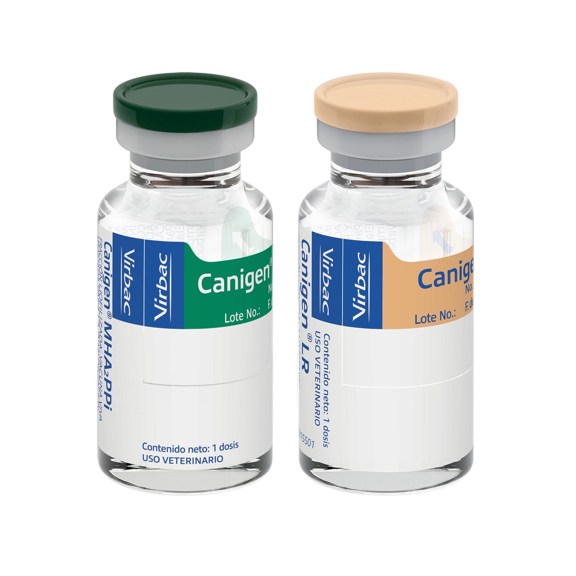 Vacuna canigen MHA2PPI/LR sextuple para perros, utilizada para la prevención de moquillo, epatitis, parvovirus, parainfluenza, leptospirosis y rabia. Uso veterinario